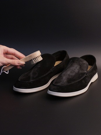 Jeśli chodzi o czyszczenie nubuku, cały proces wygląda nieco inaczej niż w przypadku klasycznej skóry. Najpierw czyścimy całość na sucho i odpowiednio szczotkujemy materiał, aby wyeliminować z niego niewielkie zabrudzenia. W kolejnym kroku pozbywamy się plam np. z soli czy oleju, dzięki czemu nie wnikają one w głąb skóry. Później odświeżamy strukturę powierzchni obuwia poprzez matowienie oraz przywracanie aksamitnego w dotyku meszku – sprawia to, że buty odzyskują swój dawny wygląd. Na końcu nie zapominamy również o Impregnacji hydrofobowej, chroniącej przed szybkim zabrudzeniem oraz plamami.
